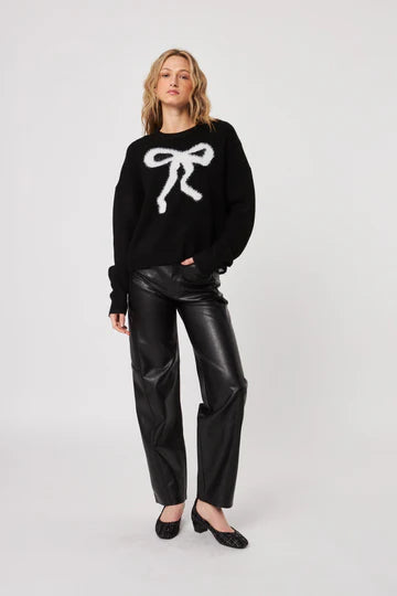 The AMBROSE bow knit sweater combines cozy comfort with a charming feminine detail, perfect for fall layering. Its soft knit fabric and elegant bow accent add warmth and style to any outfit. Pair it with your favorite jeans or skirts for a polished yet relaxed autumn look.