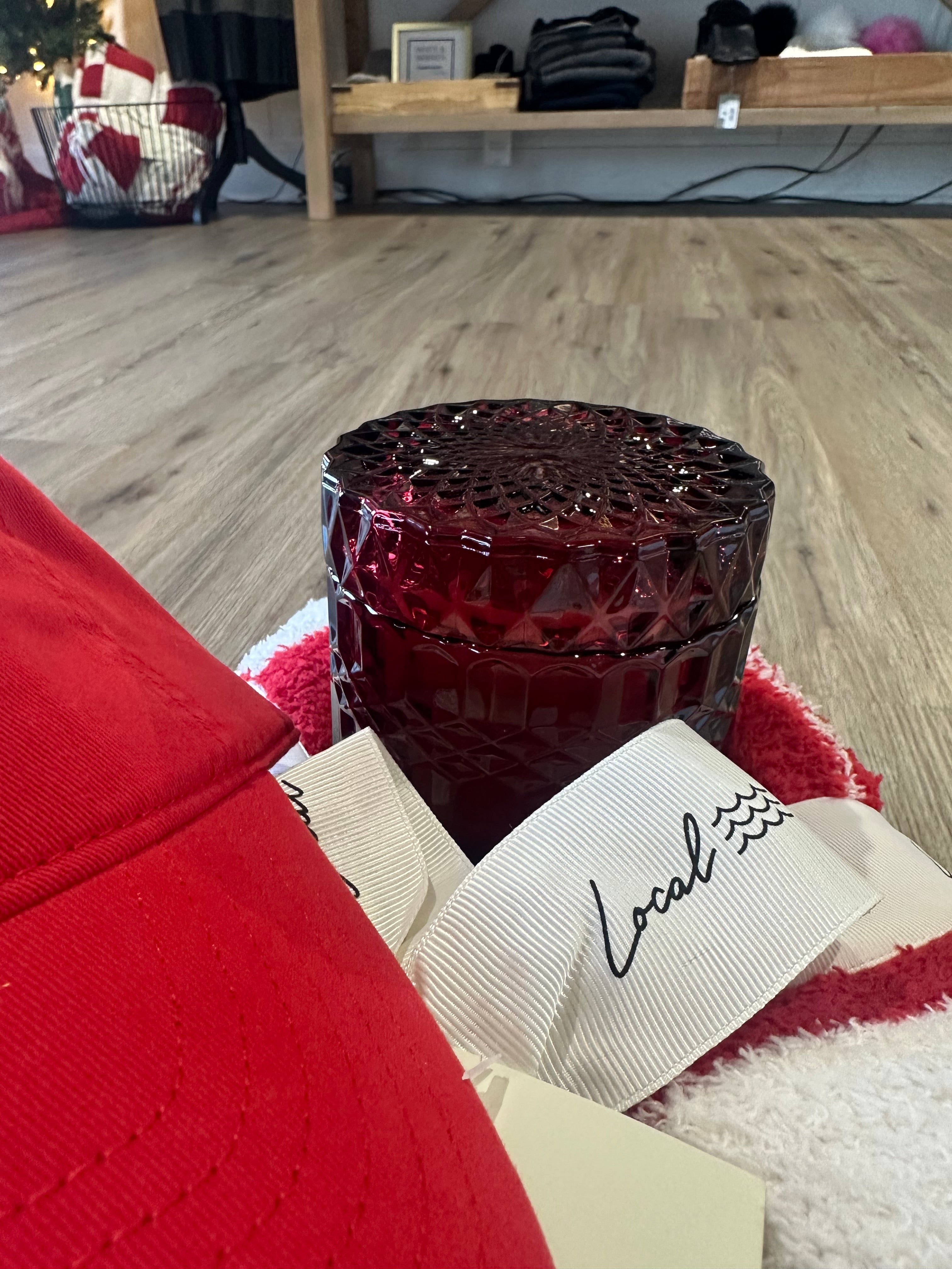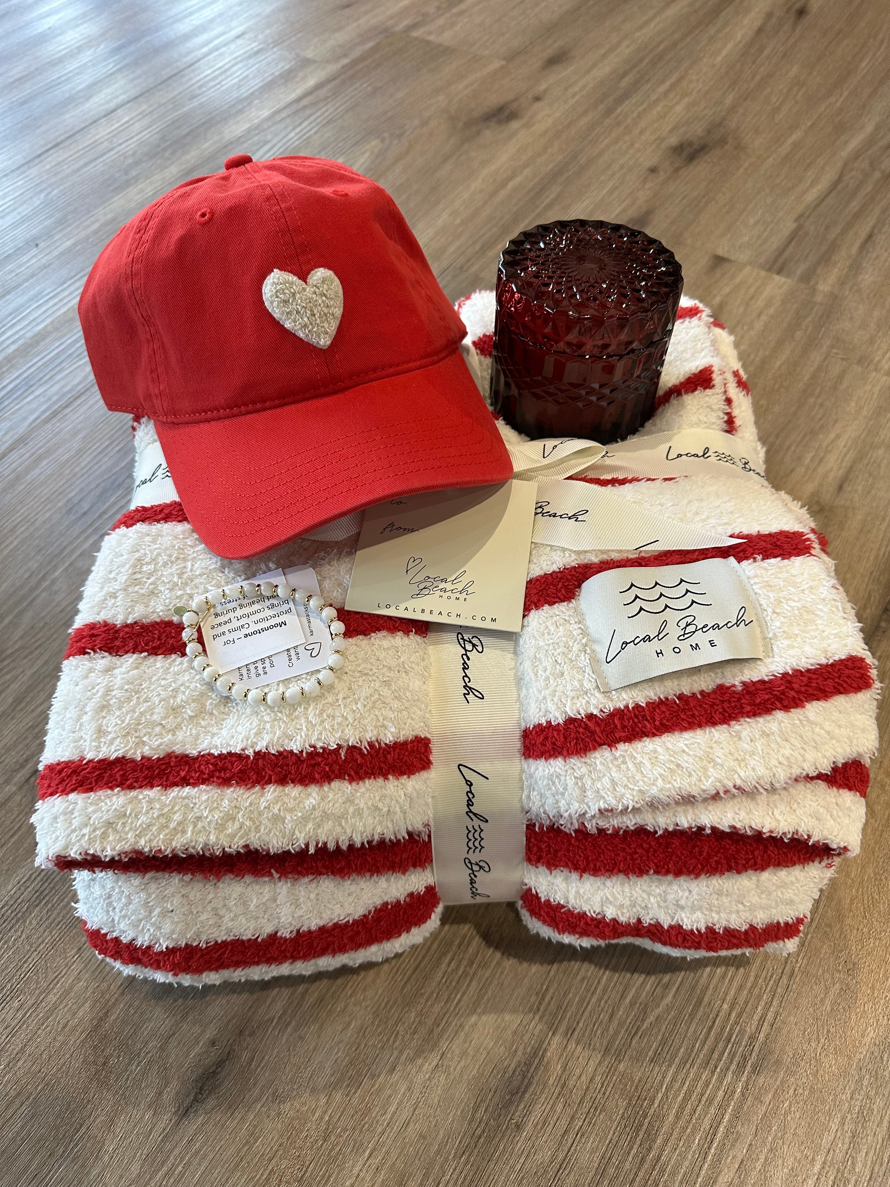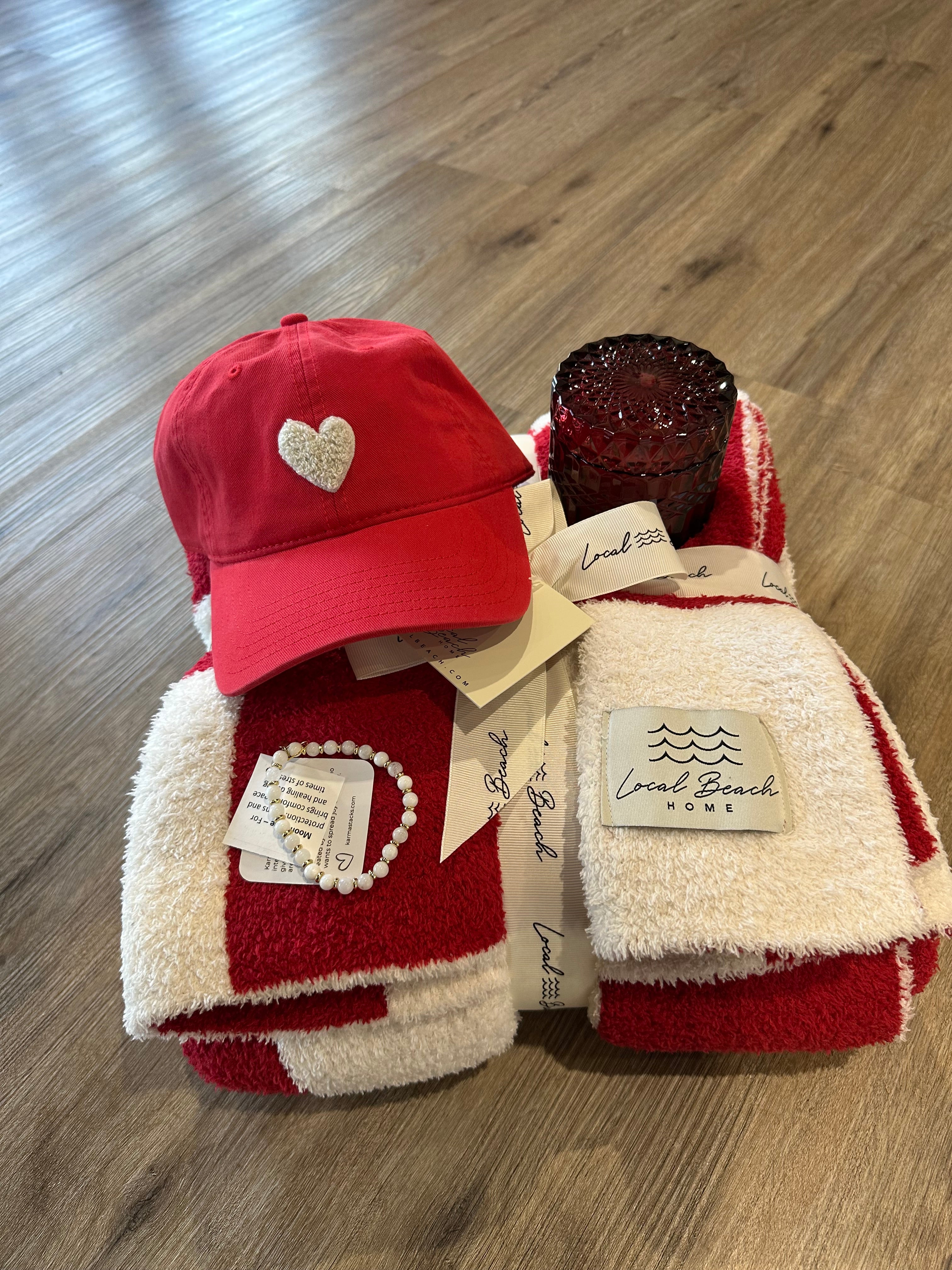 Our Scarlet Snuggle Set is the ultimate cozy companion — featuring a luxuriously soft blanket, a snug hat, a chic bracelet, and a soothing candle, all in rich shades of scarlet. Perfect for gifting or treating yourself to a little self-love and style this season.