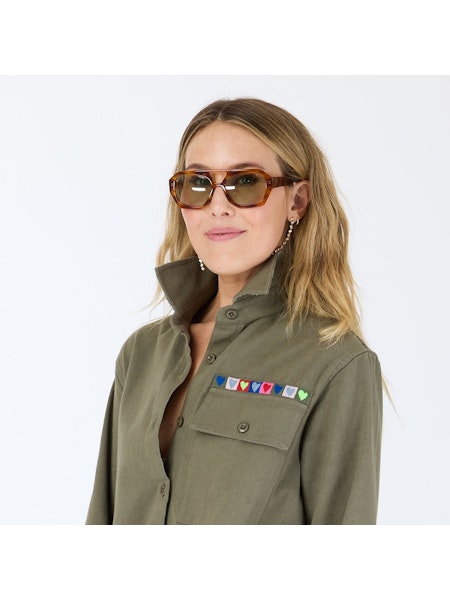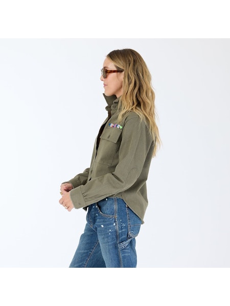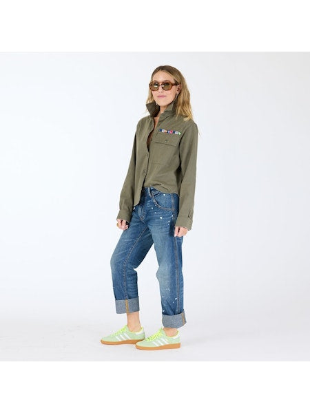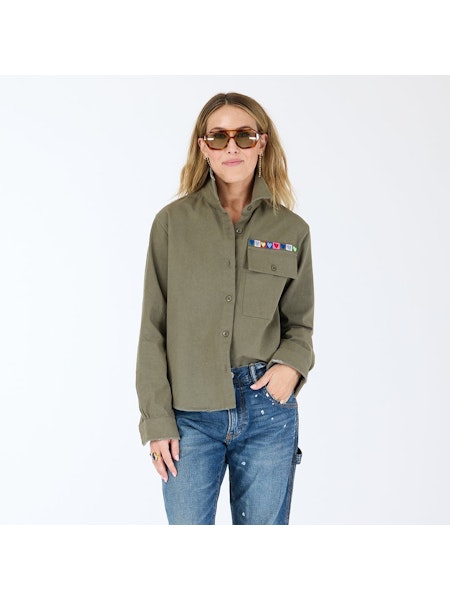 Report to duty in the Pia Love Brigade Shirt. Adorned with the Love Brigade ribbon as Kerri's art layer, this super soft twill shirt can be worn with your favorite denim, open or buttoned, for an effortlessly casual look.