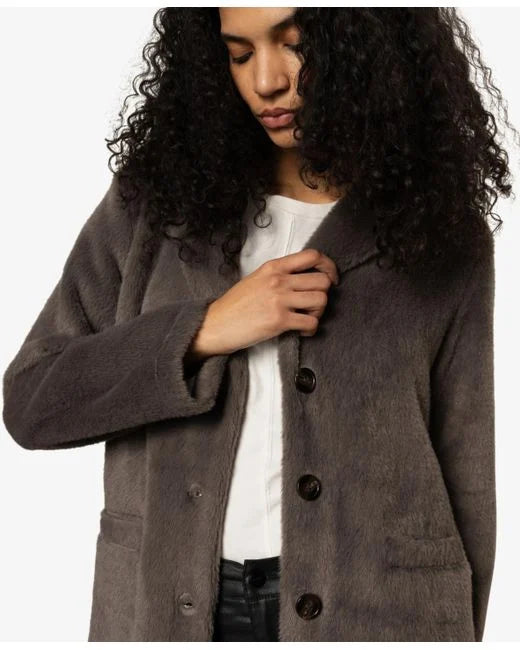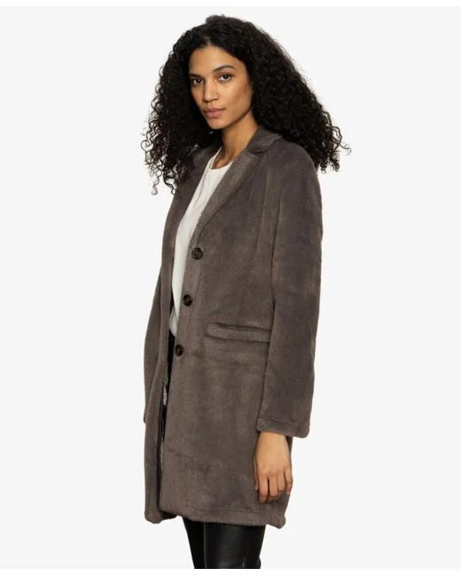 The goes-with-everything coat, this fuzzy button-front option from Sanctuary adds a textural finishing touch to any look. 59% nylon, 41% polyester; contrast: 100% rayon. Color: gray