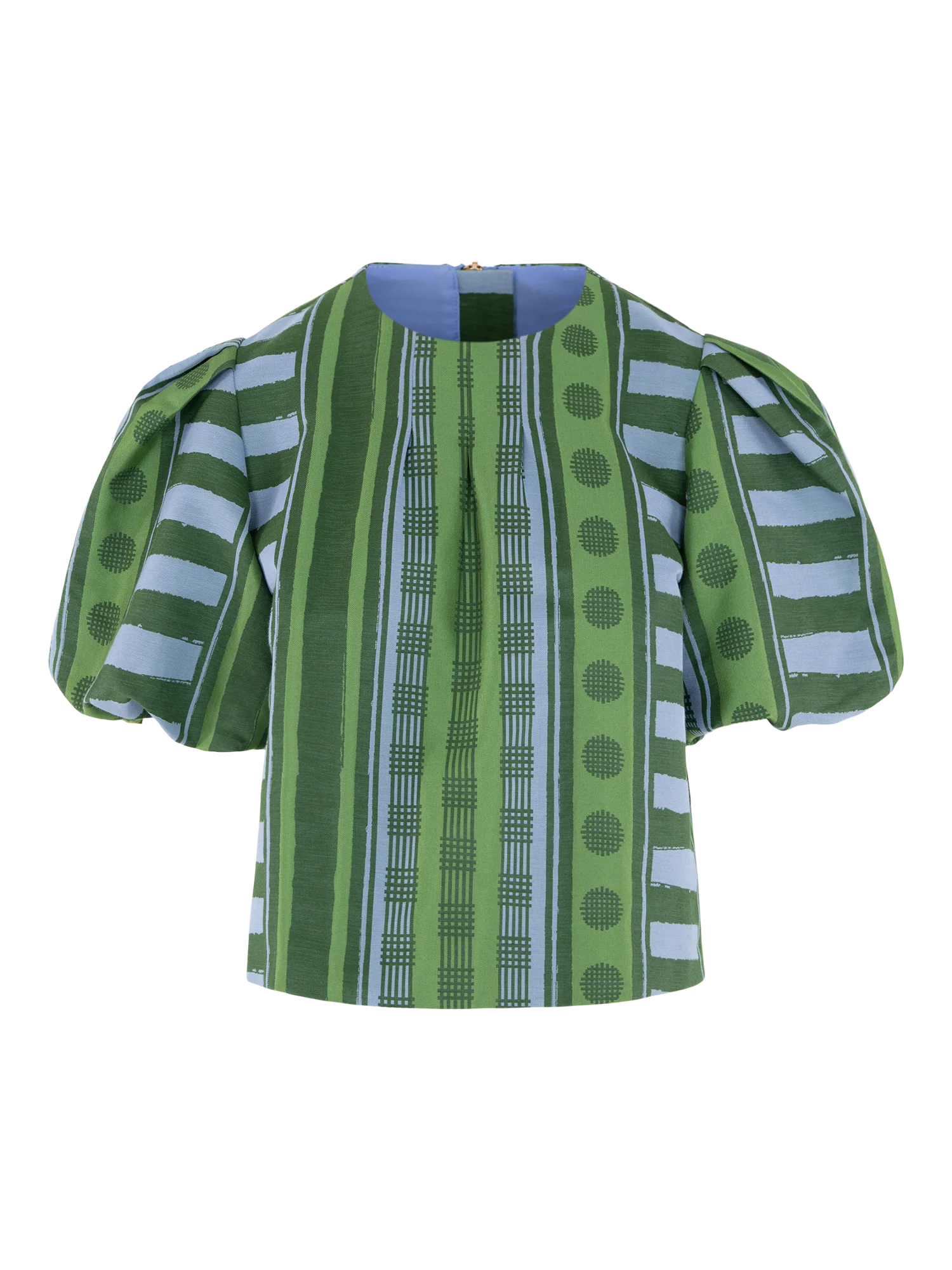 The Jane Top in Forest Jubilee delivers elevated charm with a fresh, playful edge. Featuring a boxy silhouette, this style is designed to feel structured yet effortless. Statement puff sleeves bring volume and balance, giving the top a polished presence with a touch of whimsy. Forest Jubilee showcases a dynamic intermix of patterns, printed on a luxe jacquard fabric that offers subtle structure and a gentle sheen. Perfect for adding dimension and personality to your everyday wardrobe.